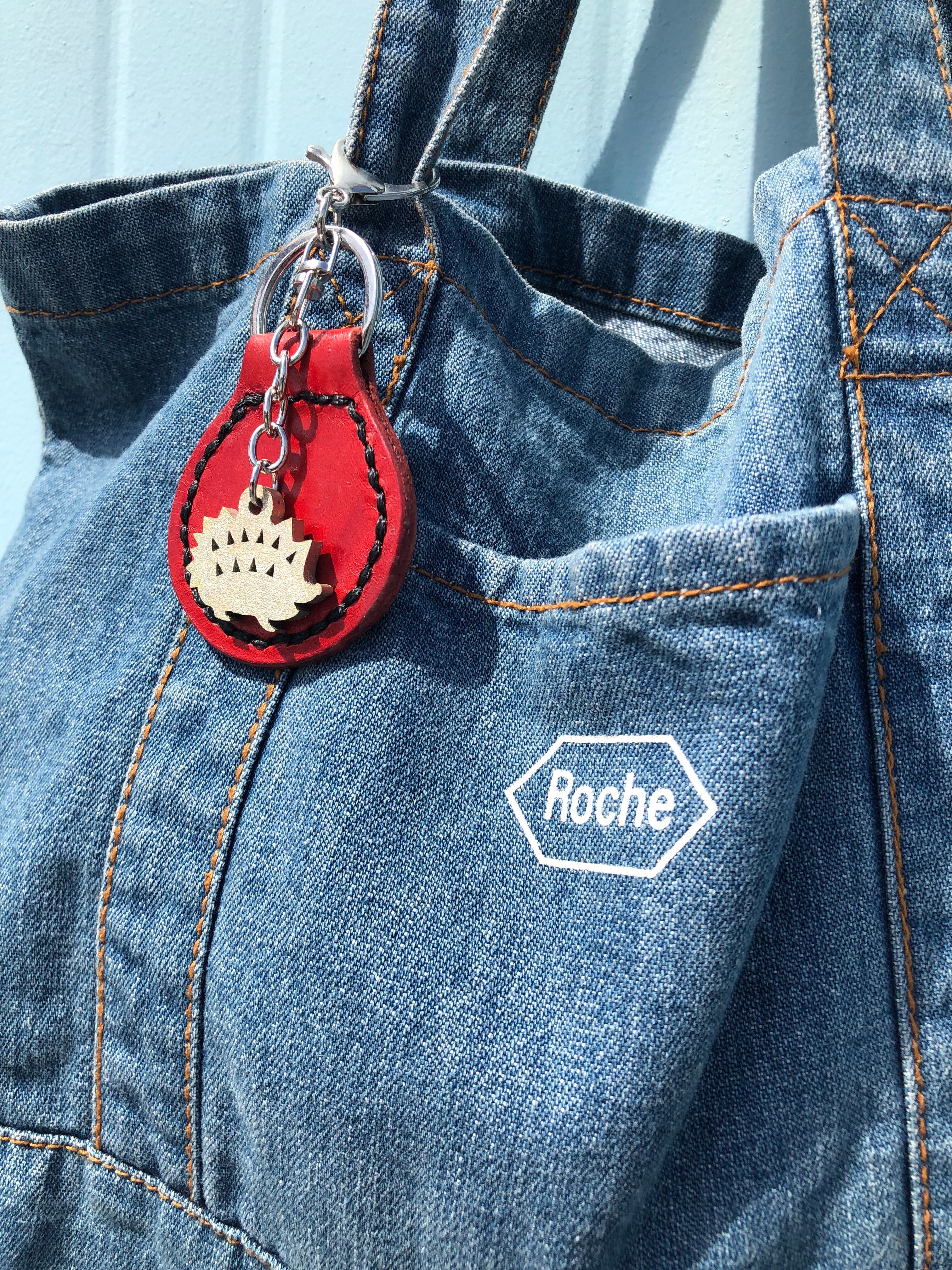 ◎本革と木製のハリネズミデザインチャームとのコンビネーションが特徴のキーホルダーです。