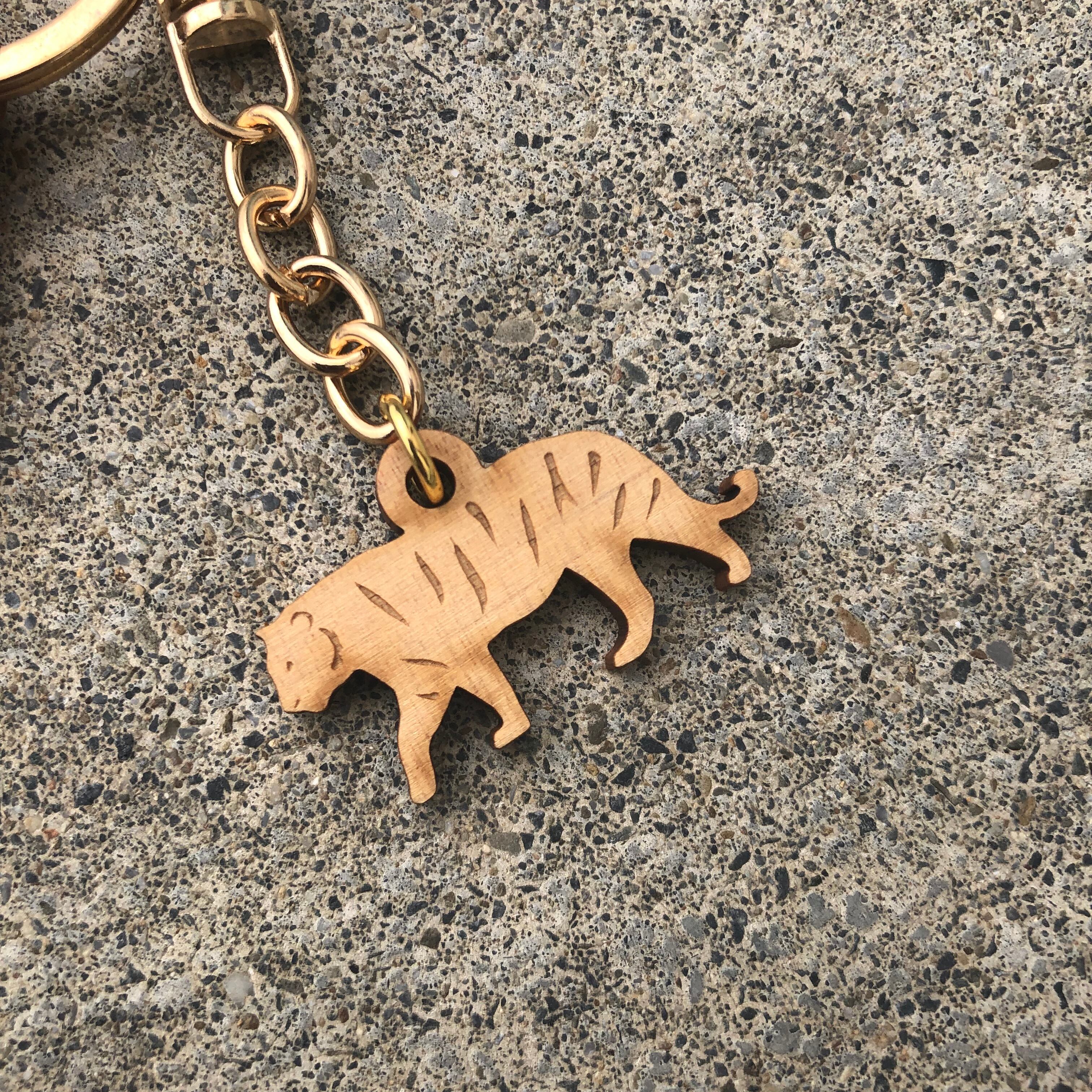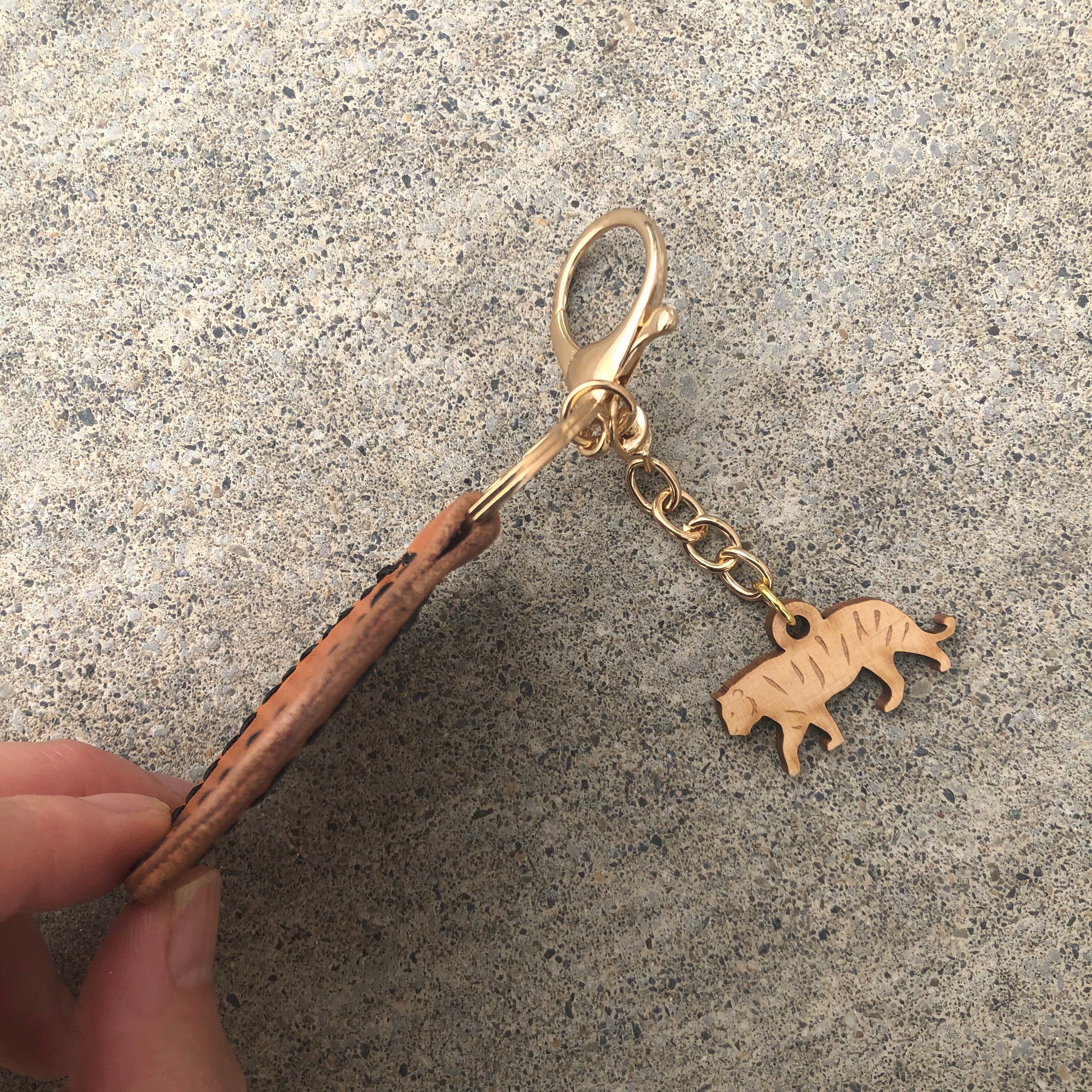 ◎本革と木製のトラデザインチャームとのコンビネーションが特徴のキーホルダーです。