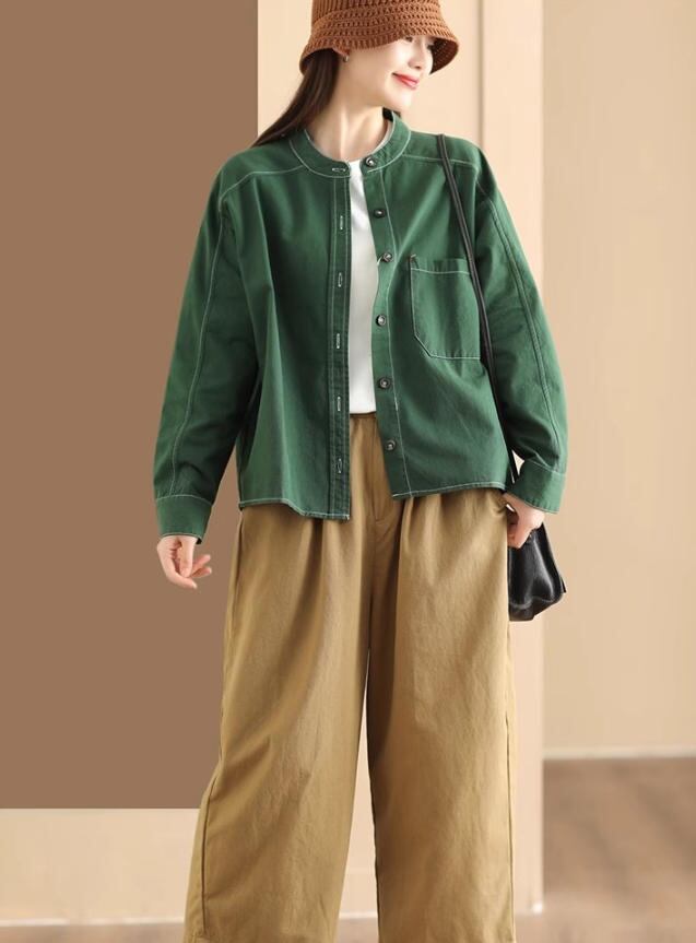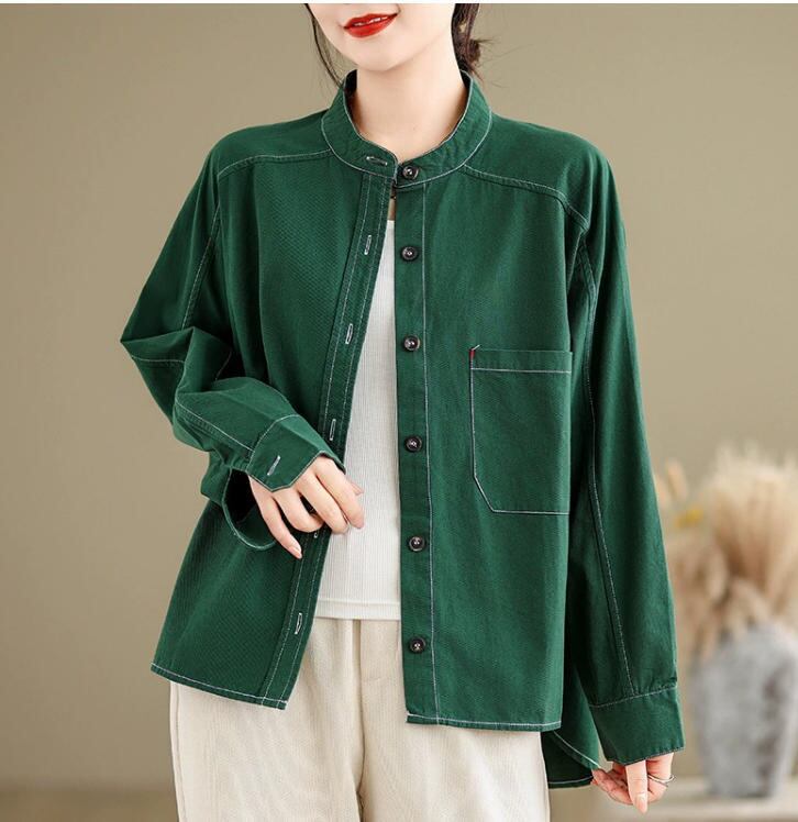 ◎鮮やかなグリーンが印象的なステッチ入りシャツです。シンプルながらも個性的なデザインで、コーディネートにアクセントを加えます。