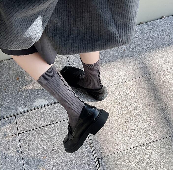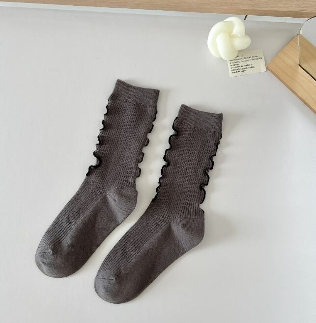 ◎シックなダークグレーが魅力のレディース用リブソックスです。おしゃれでありながら、落ち着いた色合いが日常のコーディネートにぴったりのアクセントを加えます。