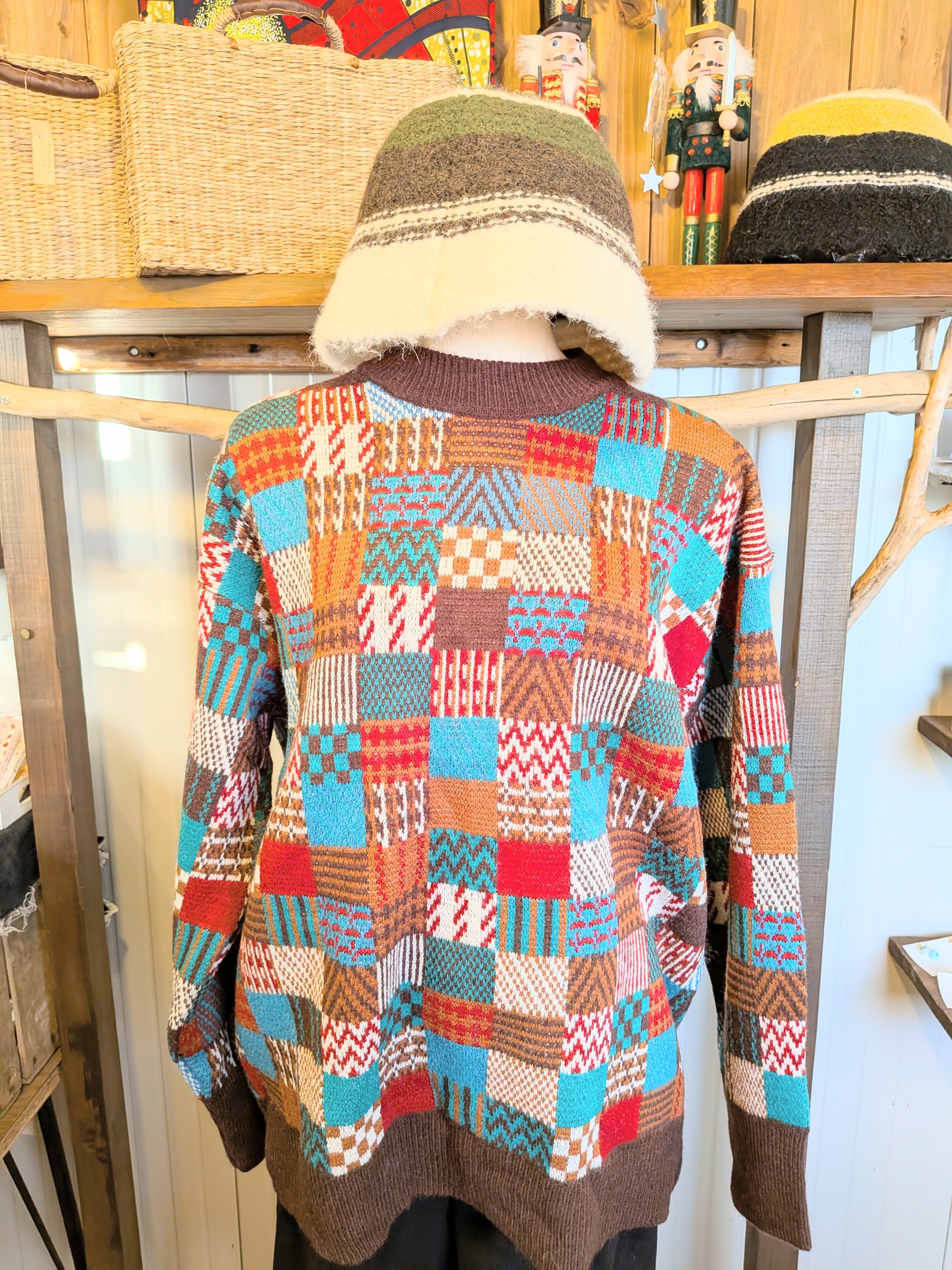 幾何学柄が魅力的なニットで、あなたのスタイルを引き立てます。
