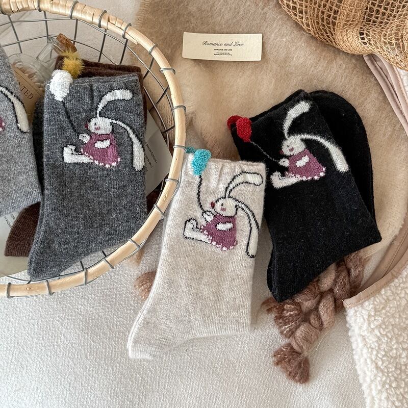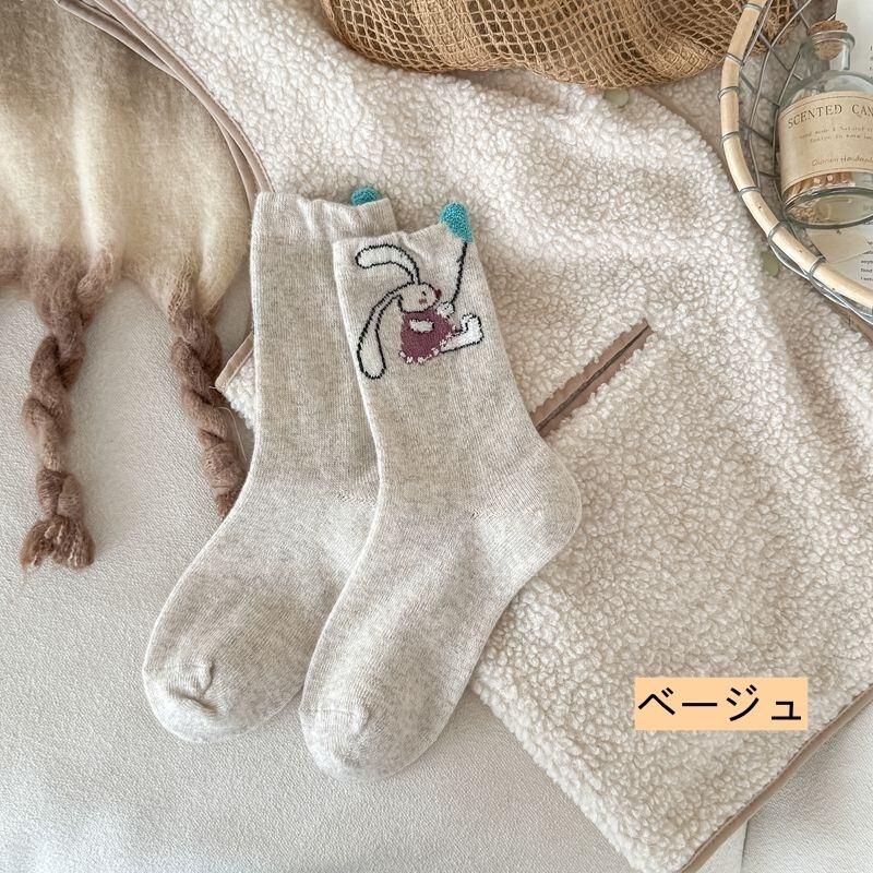 愛らしいうさぎ柄が魅力的なこのソックスは、あなたの足元を可愛らしく彩ります。