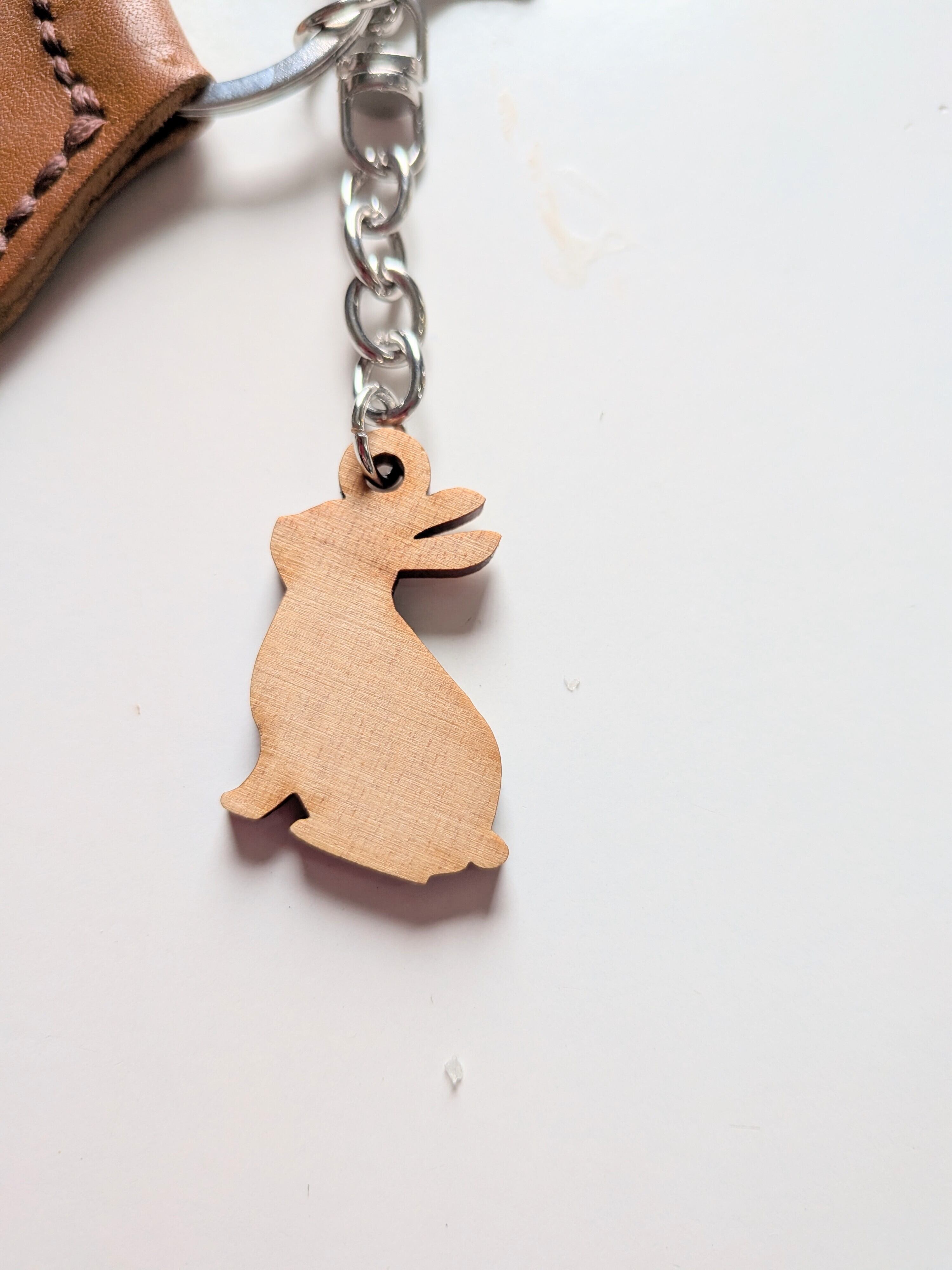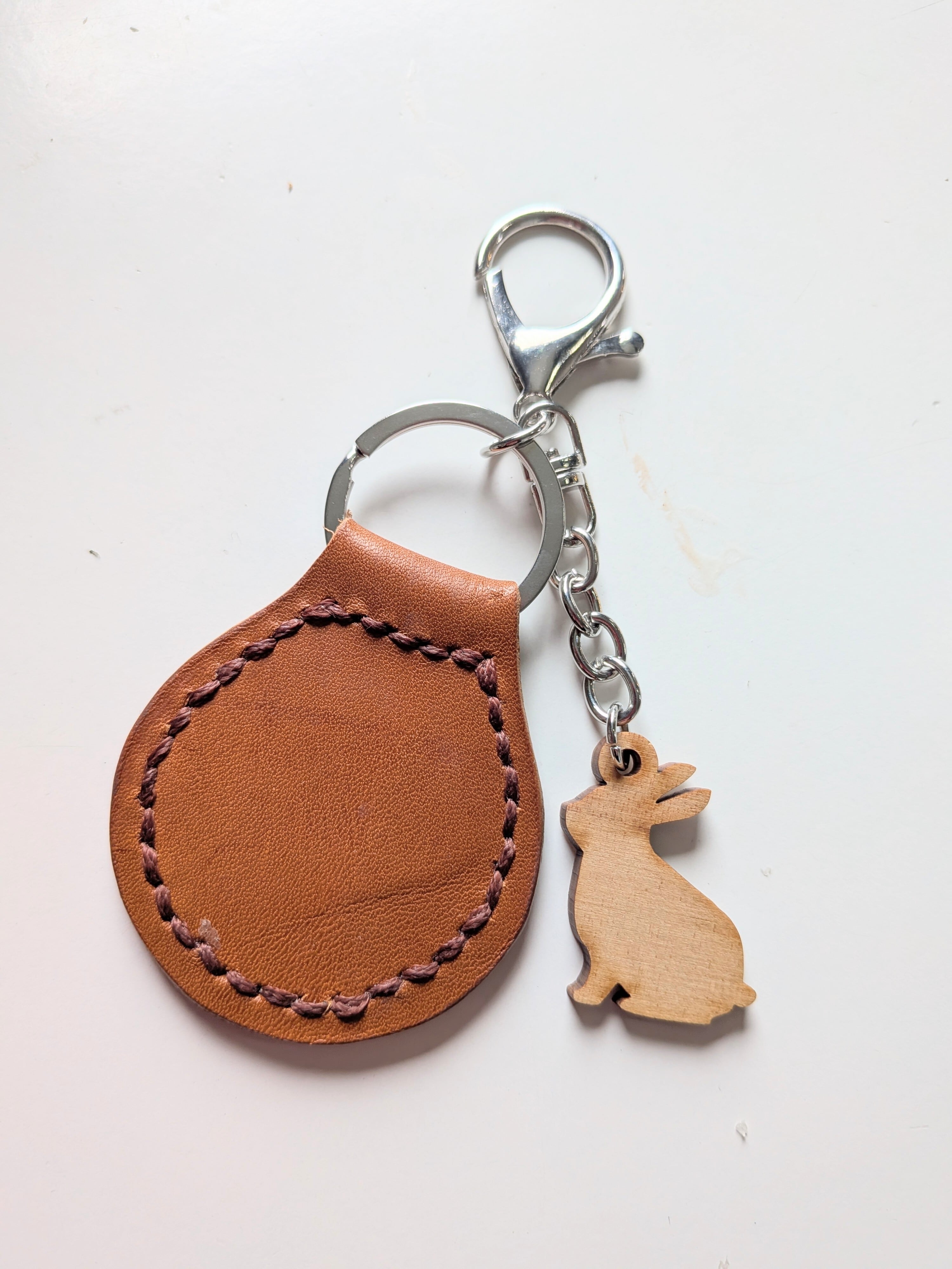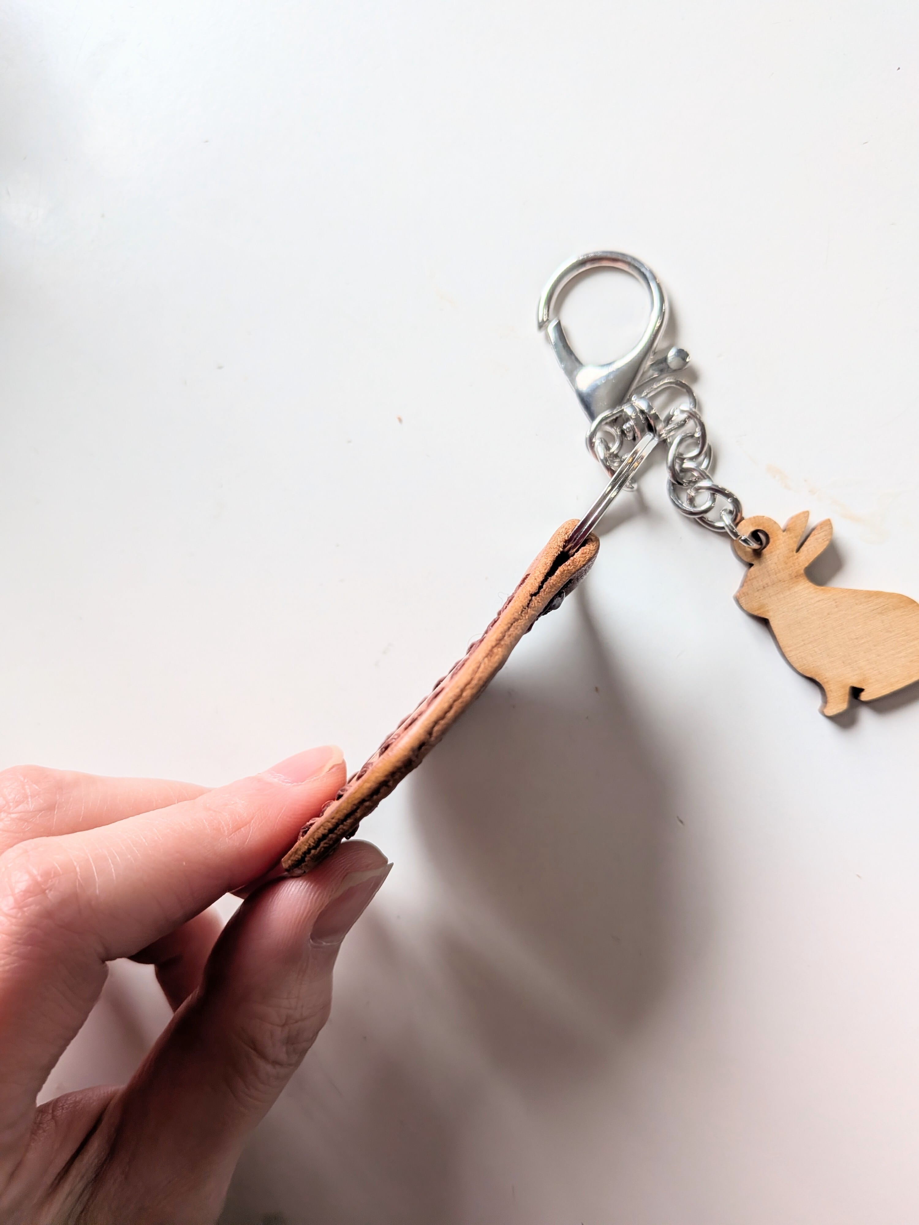 本革☓木製ウサギチャームキーホルダー