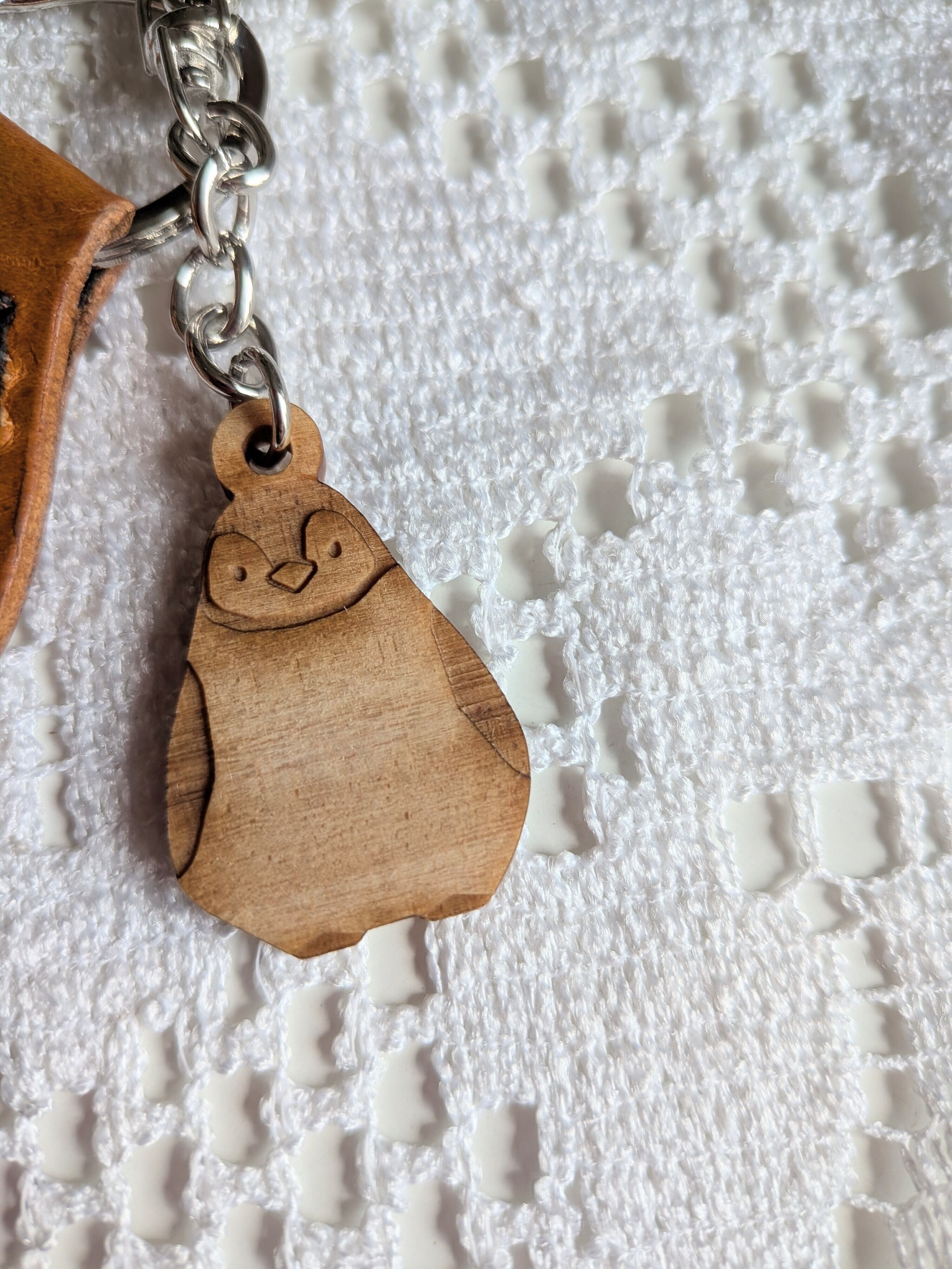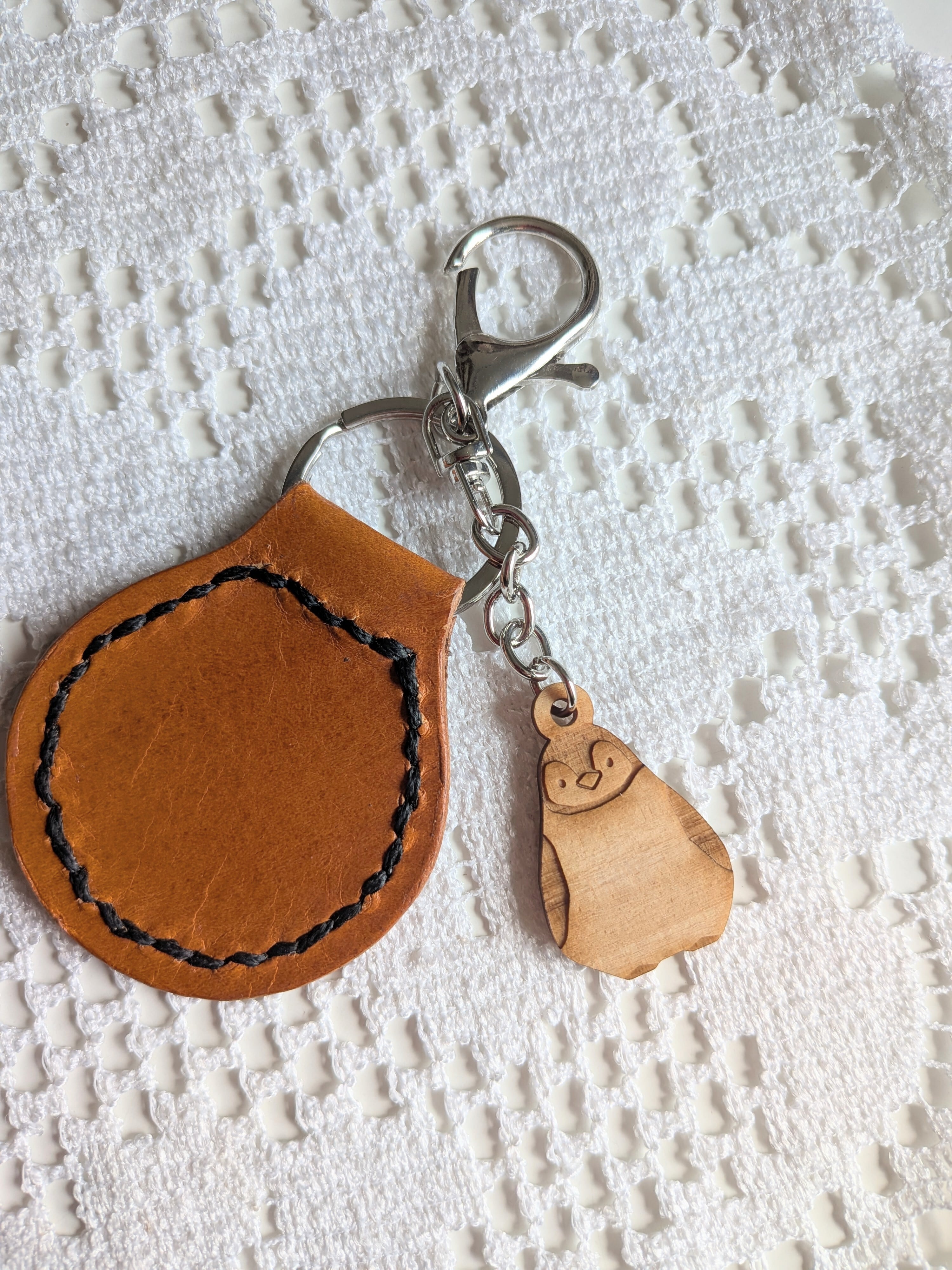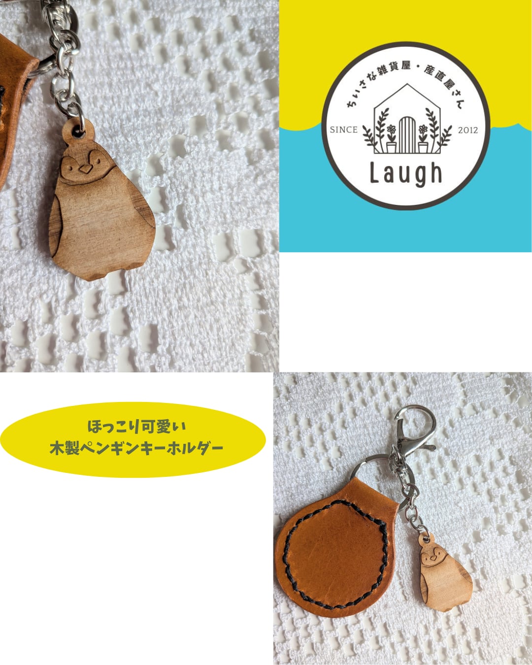 ◎本革と木製ペンギンチャーム付きキーホルダーです。温かみのある素材感とほっこりチャームが際立ち、持つことで気分が上がるアイテムです。
