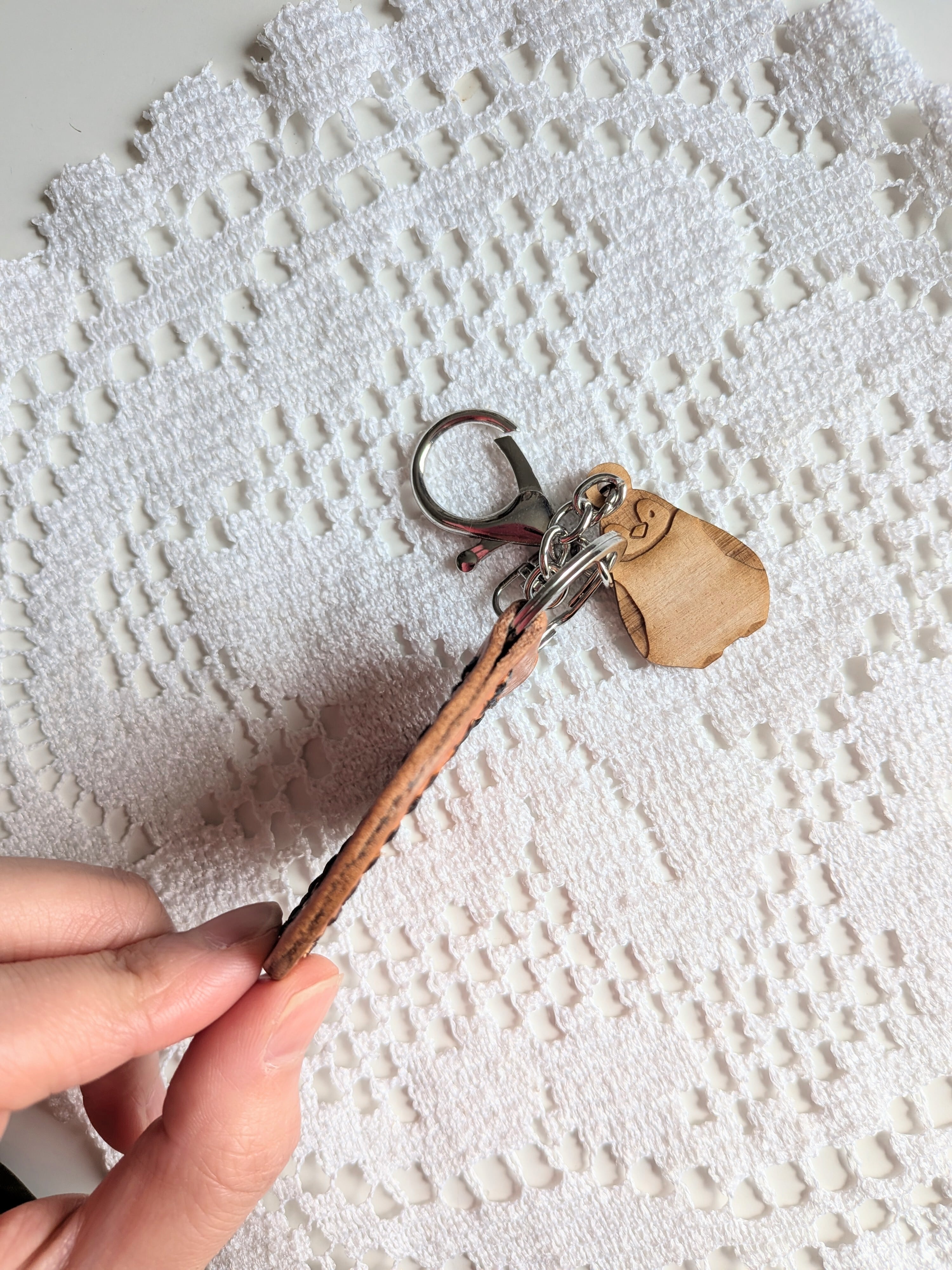 ◎1つ1つ丁寧に作られたこのキーホルダーは、ユニークなデザインが魅力です。本革の部分は使うほどに風合いが増し、あなたの手に馴染む、特別なアイテムへと育てていただけます。