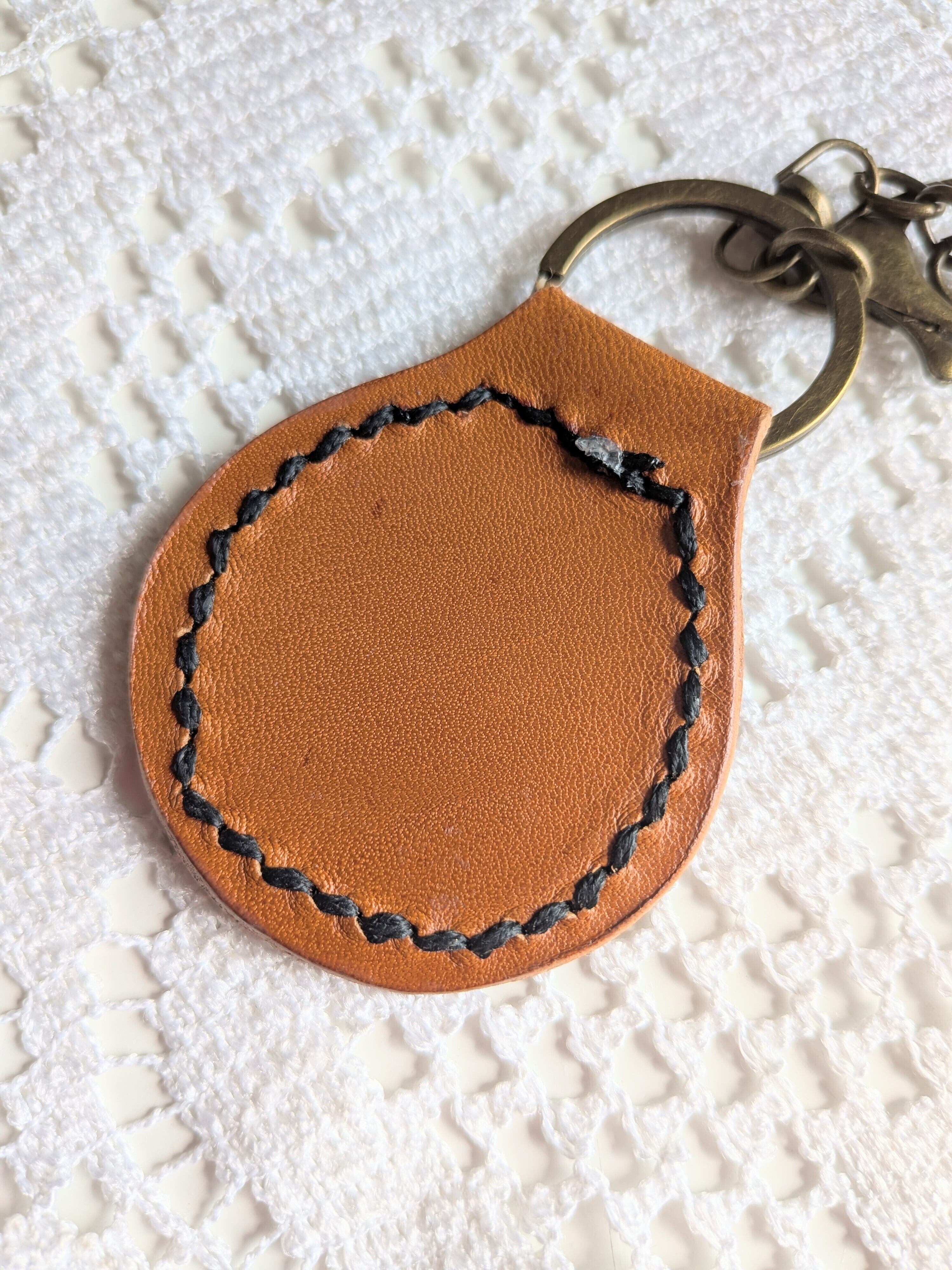 ◎1つ1つ丁寧に作られたこのキーホルダーは、ユニークなデザインが魅力です。本革の部分は使うほどに風合いが増し、あなたの手に馴染む、特別なアイテムへと育てていただけます。