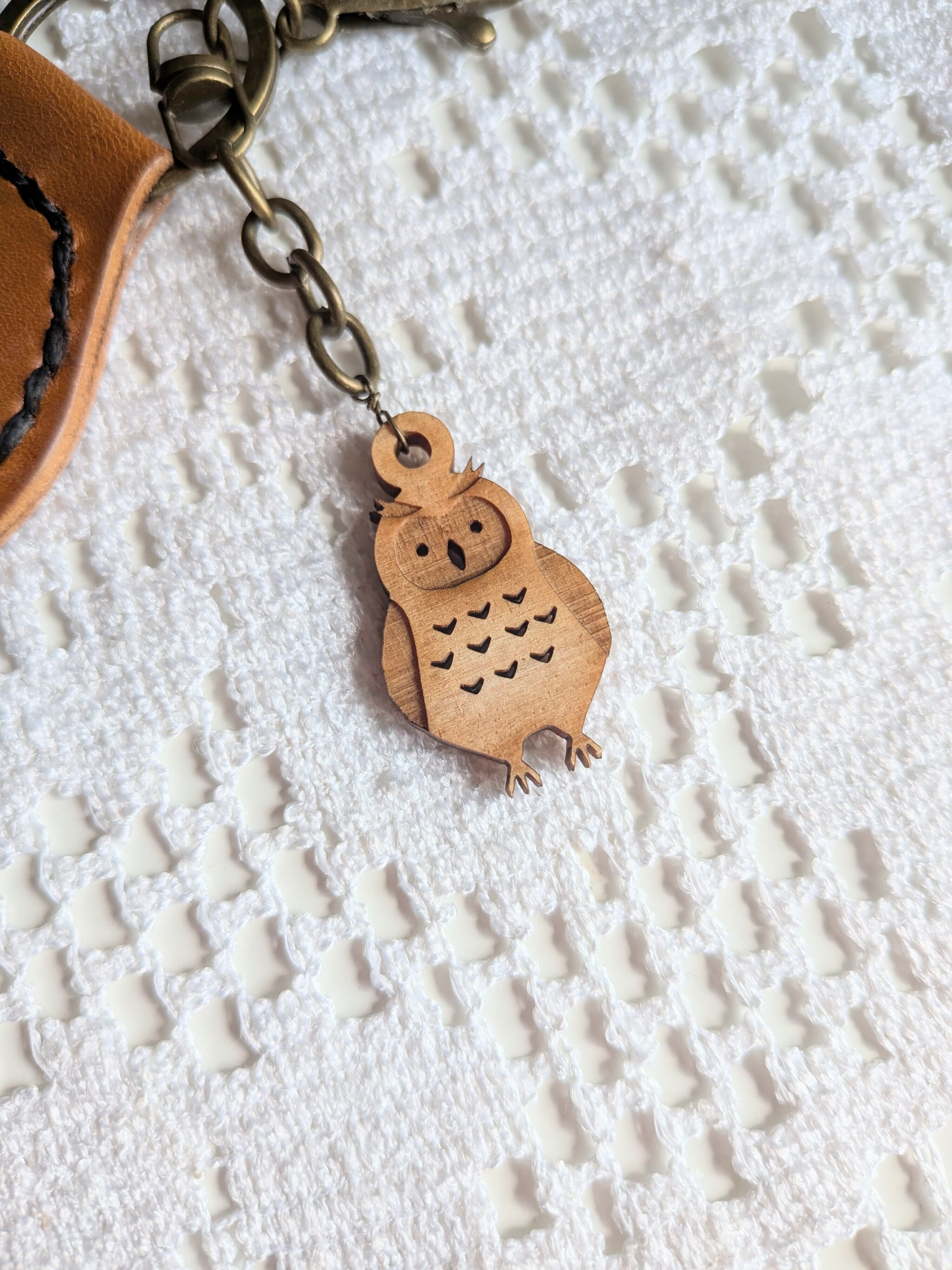 【本革&木製ミミズクチャームキーホルダー 】